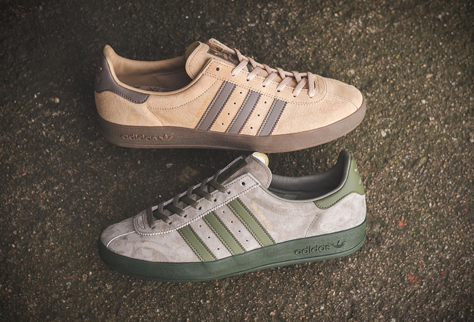 Inspired by the old school AS700 silhouette, Broomfield possess all of the right features in all of the right places. Adidas have now introduced two new colorways for Spring 2019, a raw khaki/night cargo version, and a brown/gum version. The low-top trainer is made from a premium suede upper with a darker shade of leather on the three stripes, and golden "Broomfield" lettering. The cup sole unit adds to the classic indoor styling.