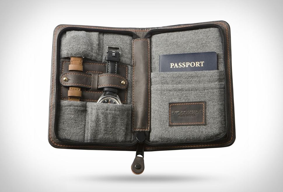 The Watch Wallet by Discommon Goods marries your most prized travel possessions – your watches and passport. Handmade in the USA from waxed Italian leather, the gorgeous travel wallet features a tweed interior, and is lined with D3O foam for outstanding impact protection. It securely holds 2 watches, and has space for your passport and other stuff such as cash, notebook and cards. It comes complete with a strap removal tool and is available in a choice of Caramel Brown, Wolf Grey, or Pebble Black.