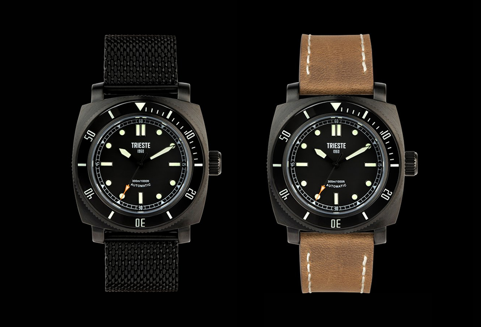 This is the good-looking Trieste Deep Sea, a new affordable diver from UK based Trieste Watches. Designed in Italy, powered by a 24 jewel, Japanese Seiko NH-35A, the Trieste Deep Sea is inspired by Rolex’s famous experimental wristwatch of the same name. The Panerai-esque diving watch, with solid construction, great looks, a genuine Sekio movement, and spare straps sold out immediately on the first edition of 50, so we’re letting you know about the second edition available now. The watch features a 44mm Stainless steel case, an AR-treated Sapphire crystal and screw-in crown, SuperLuminova hands and markers, a ceramic inlayed divers bezel, 300 meters of water-resistance, and a Milanese mesh bracelet. Other bracelets are also available to order. The watch looks sensational and costs less than many brands charge for a buckle!